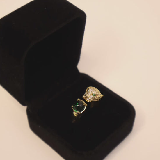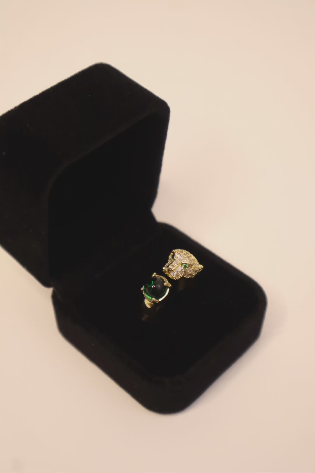 Animal Leopard 24k Gold Statement Ring with Emerald Pearl
