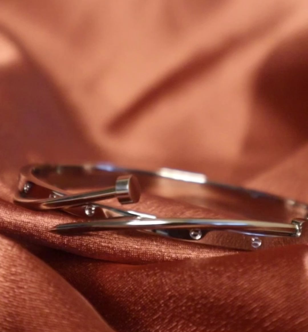 Elevate your accessory game with our exquisite Crossover Silver Diamond Encrusted Abstract Bangle, designed for the modern woman who appreciates the fusion of luxury and artistry. This stunning bangle bracelet is meticulously crafted from high-quality sterling silver and features a unique abstract design adorned with sparkling encrusted diamonds. Not only is it tarnish-resistant, but it is also hypoallergenic, ensuring both enduring beauty and comfort. Whether you're dressing up for a special occasion or adding a touch of glam to your everyday ensemble, this bangle is the perfect statement piece to enhance your style.