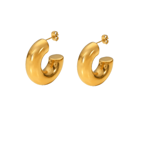 Elevate your style with our stunning Chunky Gold Hoop Earrings, the ultimate statement accessory for the modern woman who loves to express her individuality. Crafted from high-quality stainless steel, these hoop earrings are designed to make a bold impression while offering durability and elegance. Their tarnish-resistant and hypoallergenic properties ensure both lasting beauty and comfort for all-day wear. Whether you're dressing up for a special occasion or adding a touch of glam to your everyday outfits, these chunky earrings are the perfect finishing touch to enhance your wardrobe and elevate your designer jewelry collection.